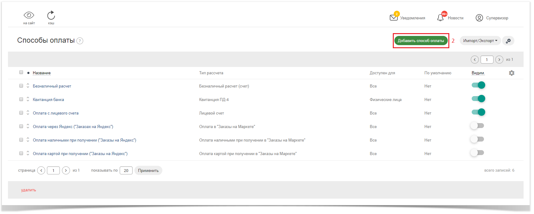 - Публичный - доступен ли способ для выбора в списке вариантов оплаты