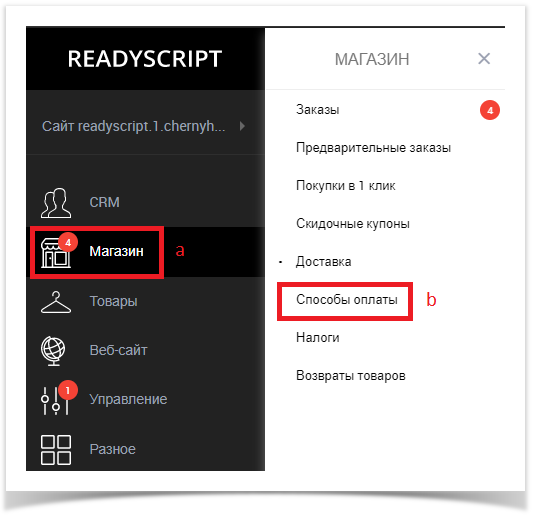 - Перейдите в настройки магазина. Как это сделать описано в статье "Настройки магазина".