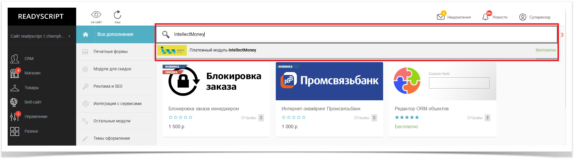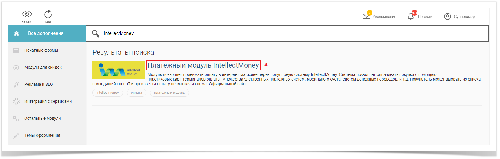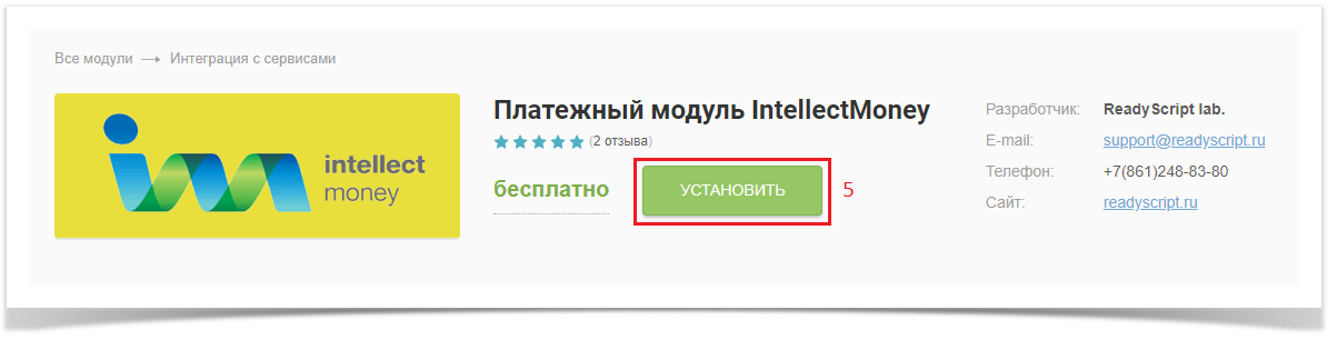 Перейдите по ссылке "Платежный модуль IntellectMoney"