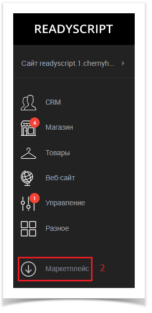 - В меню, находящемся в левой части страницы, выберите пункт "Маркетплейс"