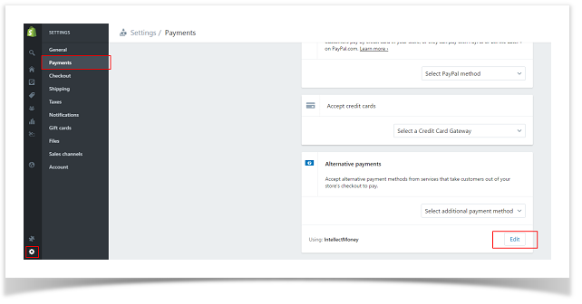 Настройки платёжного метода можно изменять на вкладке: Settings->Payments->Alternative payments->Edit(напротив IntellctMoney)