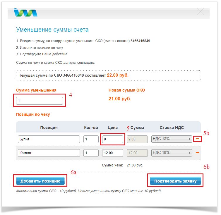 - Выбираем уменьшить сумму счёта (шаг 3 на рисунке 2)