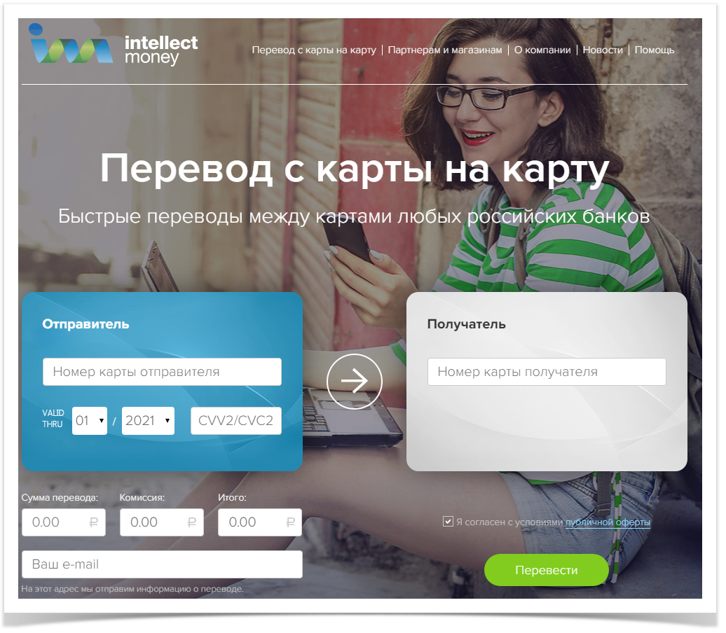 Переводы осуществляются только с карт РФ (Visa, MasterCard, МИР), поддерживающих технологию 3D Secure. Стоимость услуги: 1,5% (минимальный размер комиссии 30 рублей). Комиссия взимается с отправителя перевода.