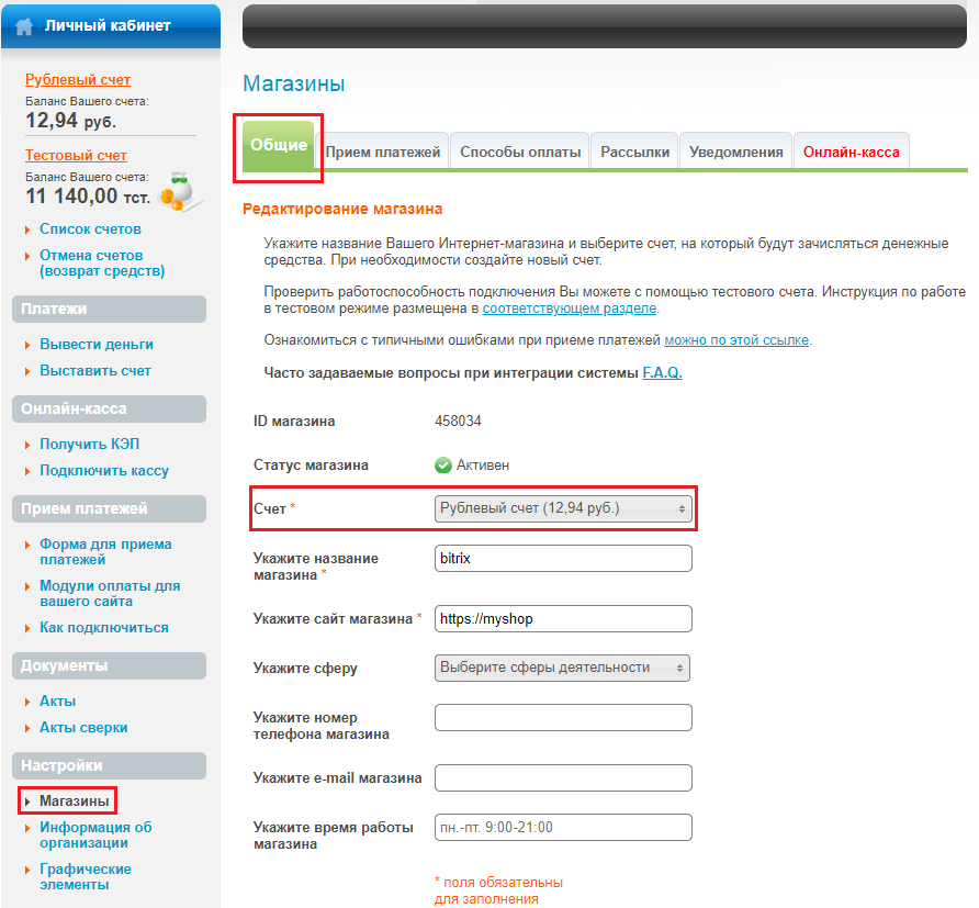 Перейдите в настройки магазина. Как это сделать описано в статье "Настройки магазина".