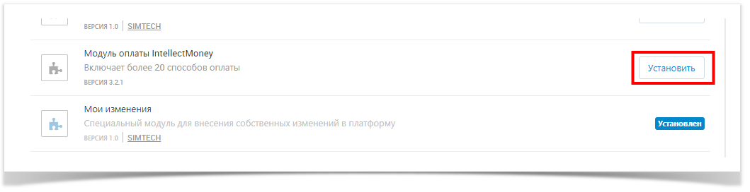 6. Находим "Модуль оплаты IntellectMoney" и нажимаем "Установить".