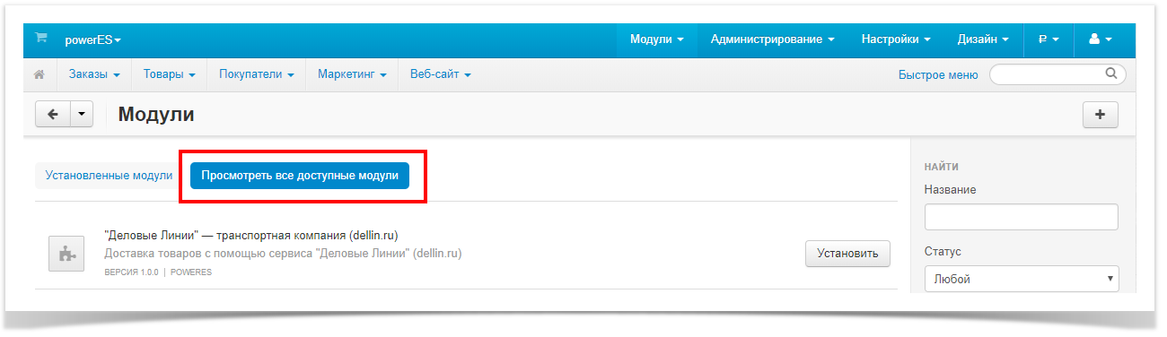 5. Переходим на вкладку "Посмотреть все доступные модули".