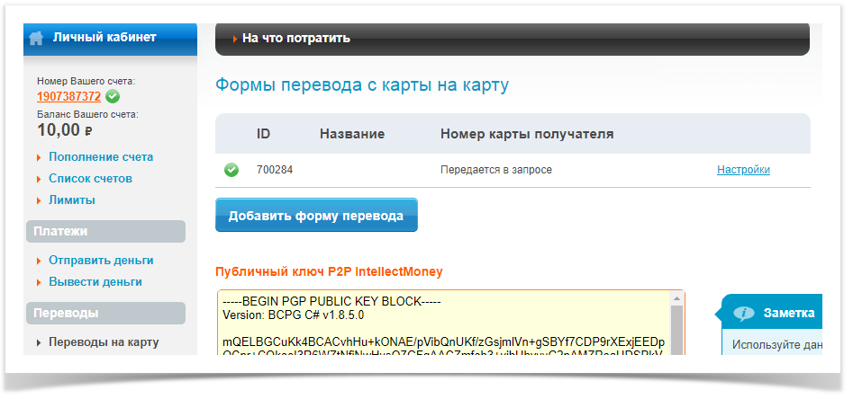 Принимать денежные переводы можно на банковскую карту. Для этого необходимо зарегистрироваться на нашем сайте и воспользоваться одним из инструментов для приёма платежей: