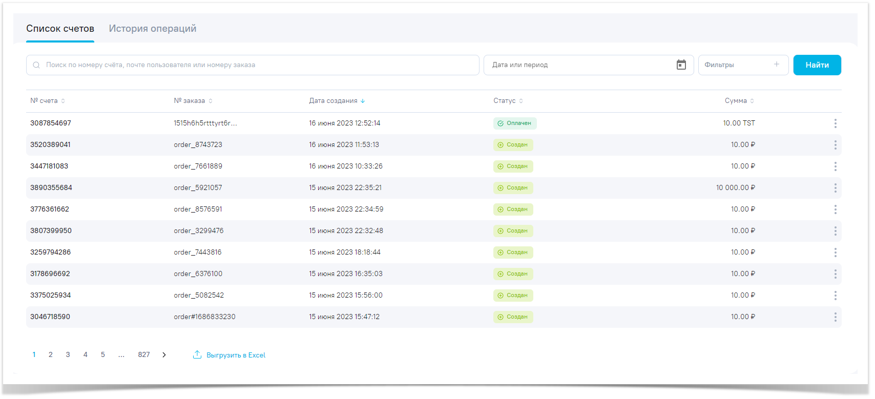 В разделе личного кабинета «Счета» вы можете в режиме online отслеживать как движение по счетам организации в системе IntellectMoney, так и информацию по отдельным счетам к оплате (СКО), выставленным клиентам за покупки в интернет-магазинах.