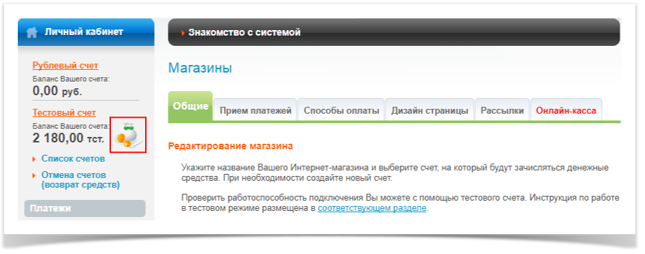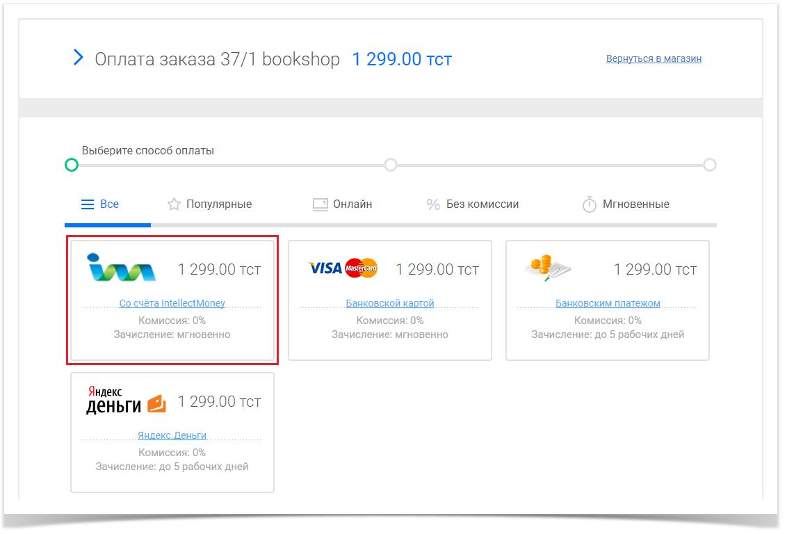 Внимание! Оплата тестового счёта возможна только со счёта IntellectMoney.