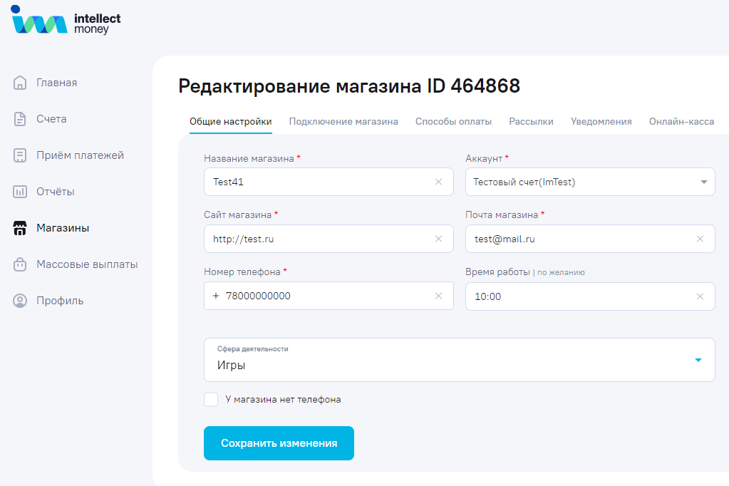 - Письмо об ошибке при отправке запроса для магазина. Если отметить, то магазин будет уведомлен письмом об ошибке при отправке запроса от системы IntellectMoney магазину