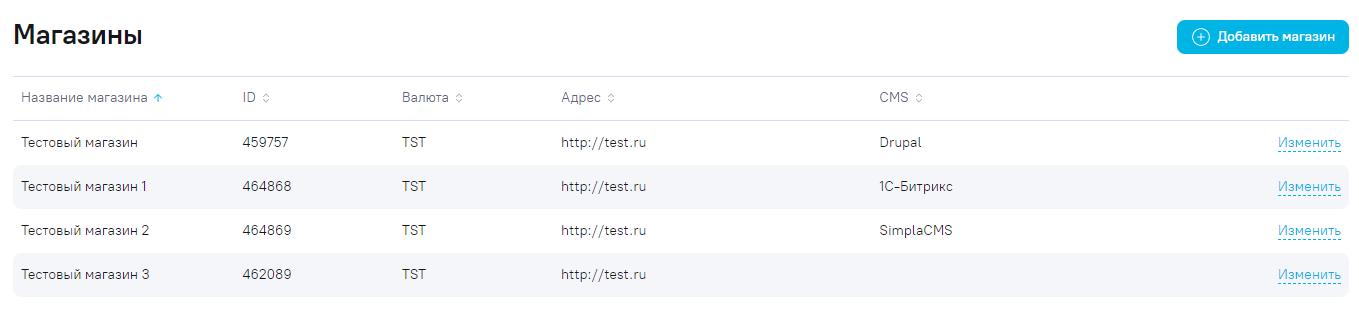 2. Нажать кнопку “Добавить магазин“ (если еще нет магазина) или кнопку “Изменить“ напротив нужного магазина