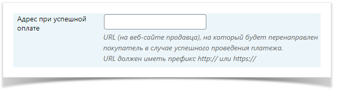 f. Адрес при успешной оплате - URL (на веб-сайте продавца), на который будет перенаправлен покупатель в случае успешного проведения платежа. URL должен иметь префикс http:// или https://