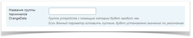h. Название группы терминалов OrangeData - группа устройств с помощью которых будет пробит чек. Если данный параметр оставить пустым, будет установлено значение по умолчанию