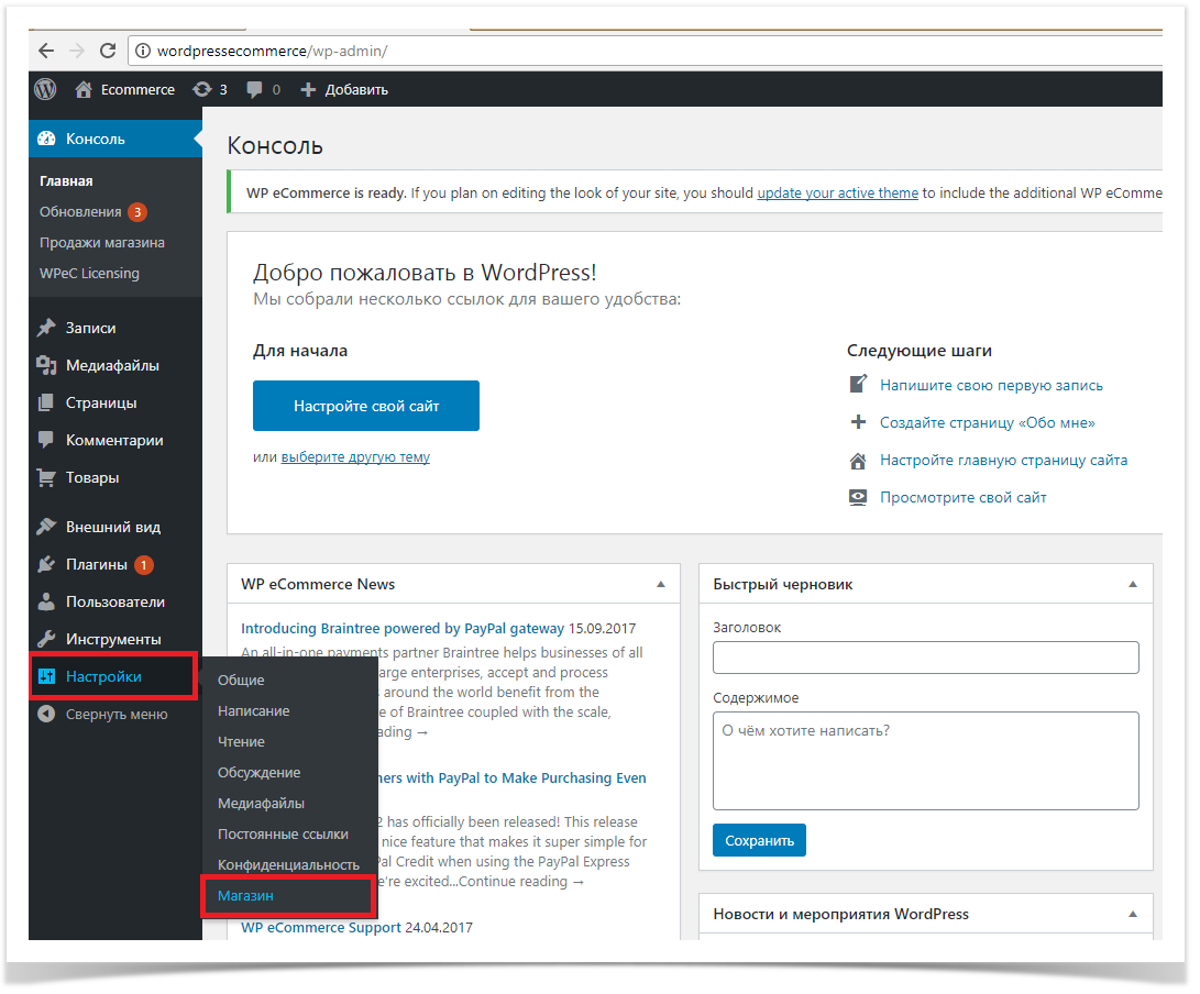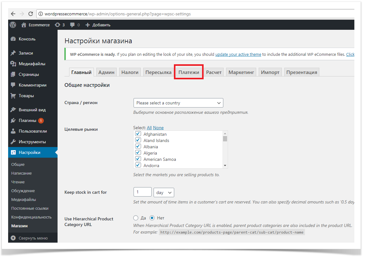 Модуль работает с плагином WP eCommerce версии 3.12.2