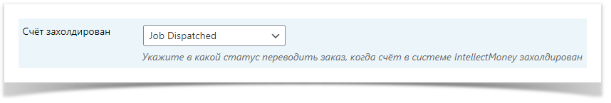 p. Счёт захолдирован - укажите в какой статус переводить заказ, когда счёт в системе IntellectMoney захолдирован