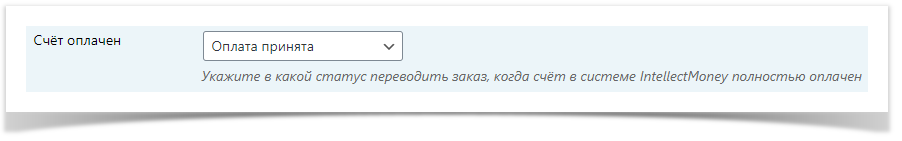 o. Счёт оплачен - укажите в какой статус переводить заказ, когда счёт в системе IntellectMoney полностью оплачен
