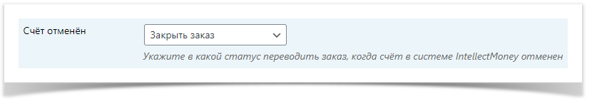 n. Счёт отменён - укажите в какой статус переводить заказ, когда счёт в системе IntellectMoney отменен