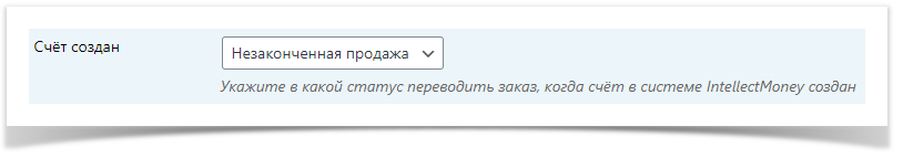 m. Счёт создан - укажите в какой статус переводить заказ, когда счёт в системе IntellectMoney создан