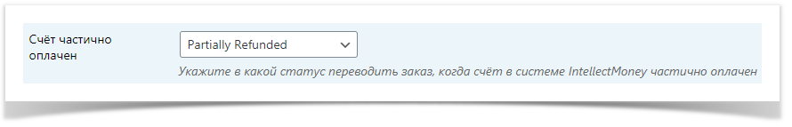 q. Счёт частично оплачен - укажите в какой статус переводить заказ, когда счёт в системе IntellectMoney частично оплачен