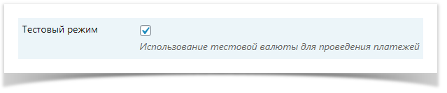i. Тестовый режим - использование тестовой валюты для проведения платежей