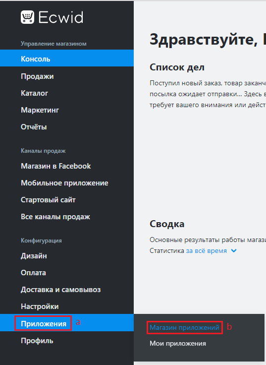 1. Зайдите в личный кабинет Ecwid по адресу https://my.ecwid.com/cp/