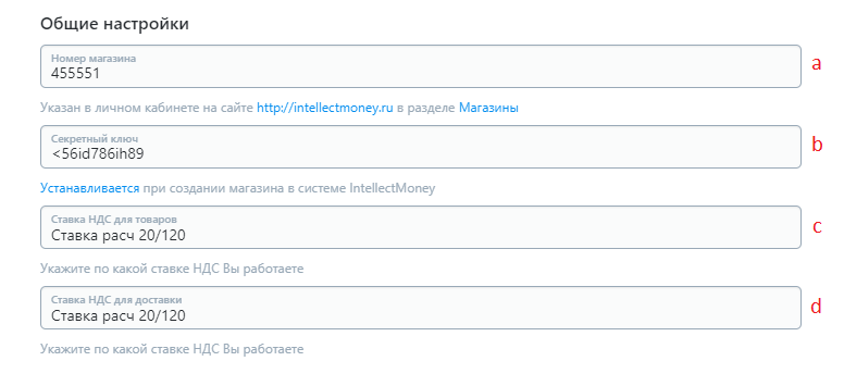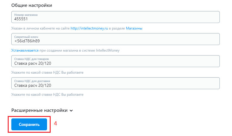 2. Секретный ключ - устанавливается при создании магазина в системе IntellectMoney