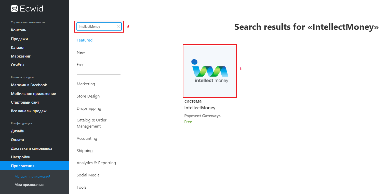 3. Выберите приложение IntellectMoney: