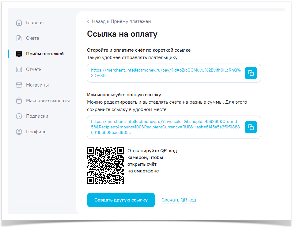 IntellectMoney может предложить несколько вариантов оплаты с помощью QR-кода.