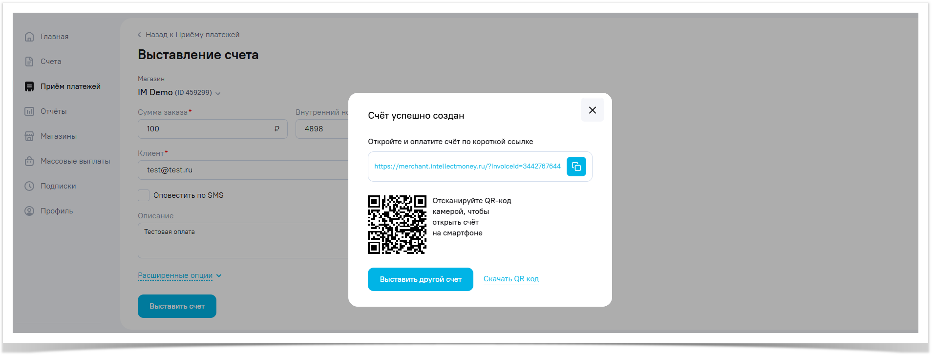 IntellectMoney предоставляет возможность совершать оплату с помощью QR-кода.