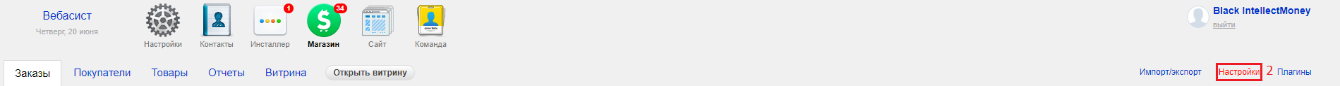 - Перейдите в настройки магазина. Как это сделать описано в статье "Настройки магазина".