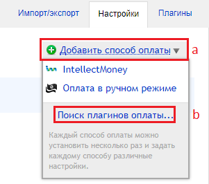 - В выпадающем меню нажмите на ссылку "Поиск плагинов оплаты"