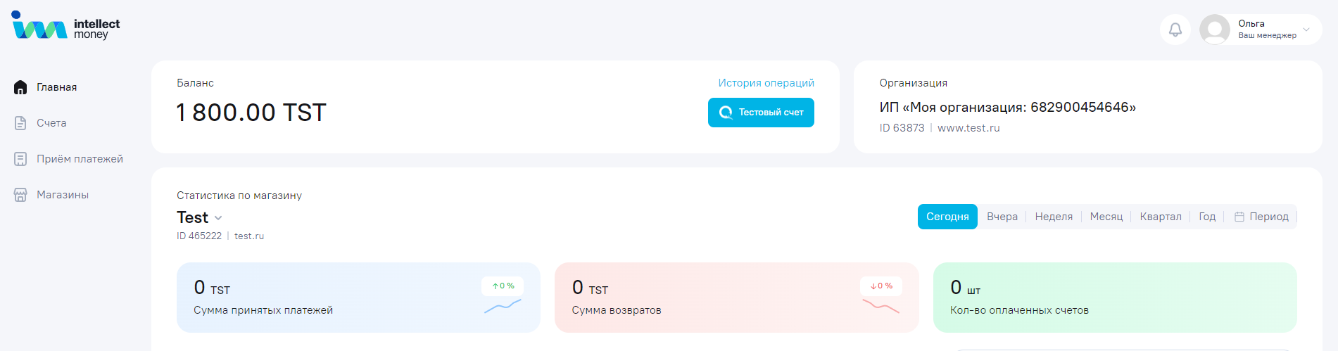 Данный функционал позволяет создавать учетные записи для сотрудников организации с ограничением прав. В зависимости от предоставленных прав сотрудники могут видеть те или иные разделы личного кабинета IntellectMoney.