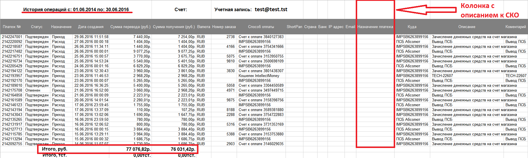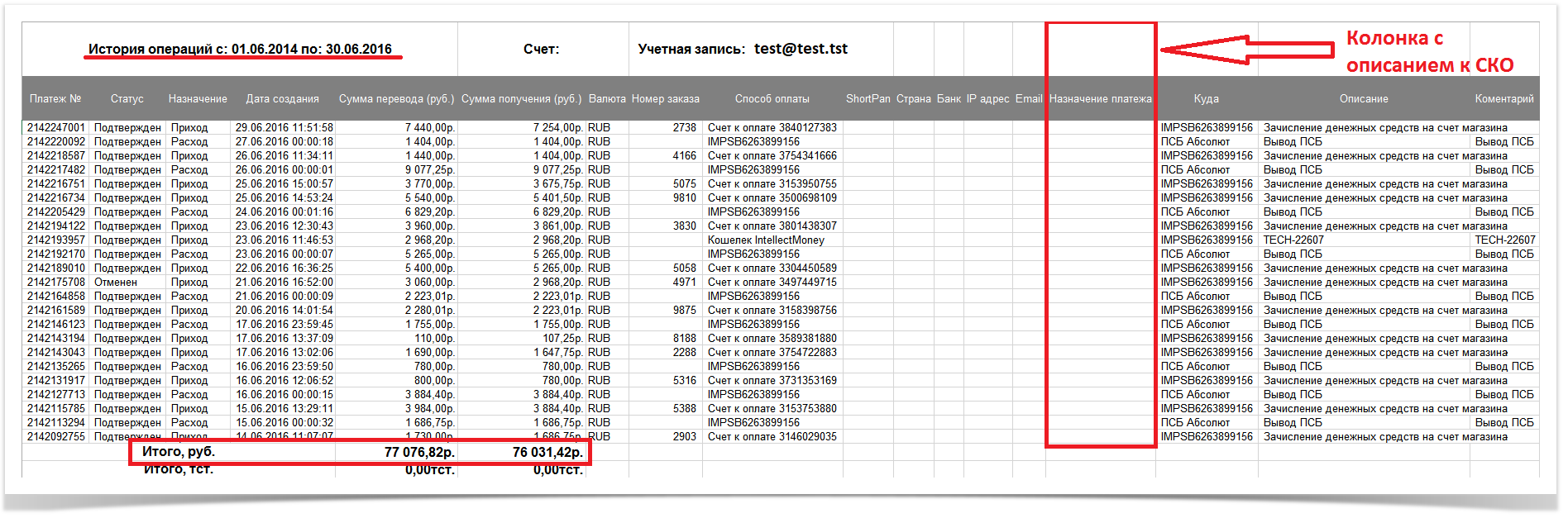 В колонке с описанием к СКО чаще всего прописывается внутренний номер заказа в интернет-магазине.