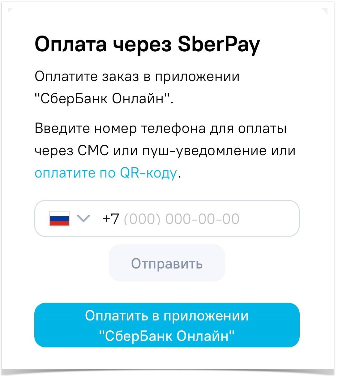 SberPay, Gazprom Pay и Mir Pay - оплата через мобильное приложение без ввода данных банковской карты.