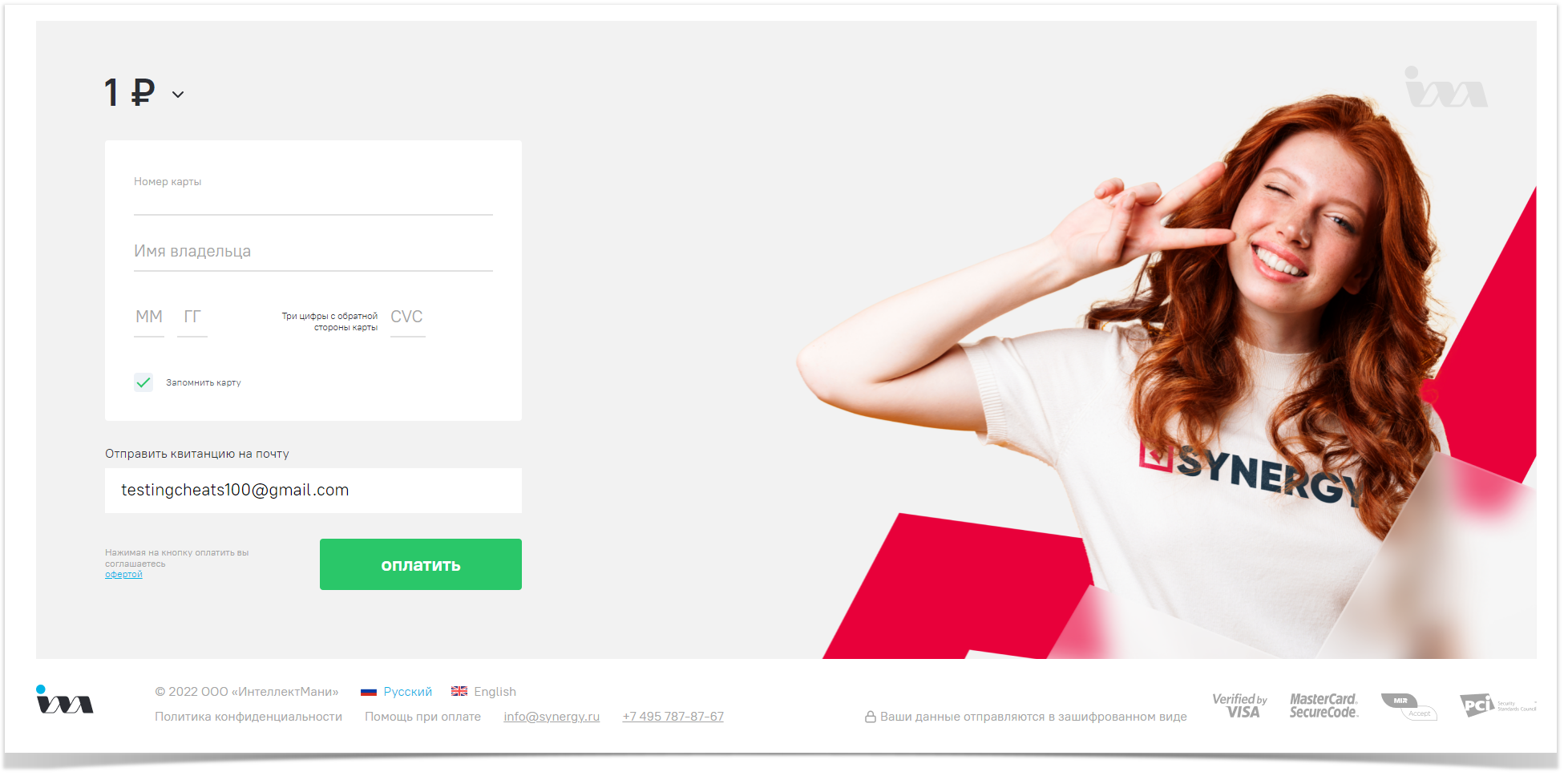 Для совершения оплаты с сайта https://synergy.ru/ необходимо: