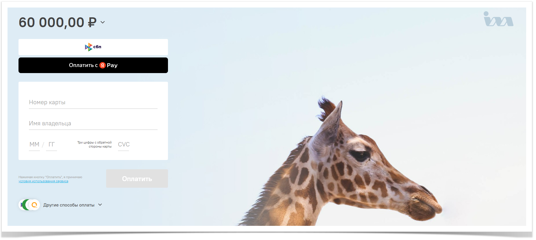 3) На открывшейся странице заполнить данные банковской карты и нажать кнопку "Оплатить".