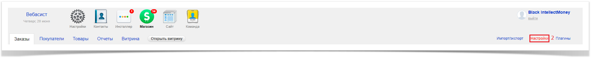 - Перейдите в настройки магазина. Как это сделать описано в статье "Настройки магазина".