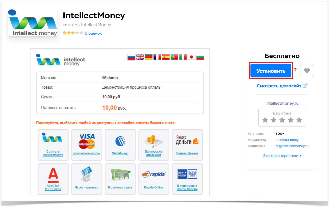 - Описание - пример: Оплата платежным агрегатором IntellectMoney. Более 20-ти способов, включая банковскую карту