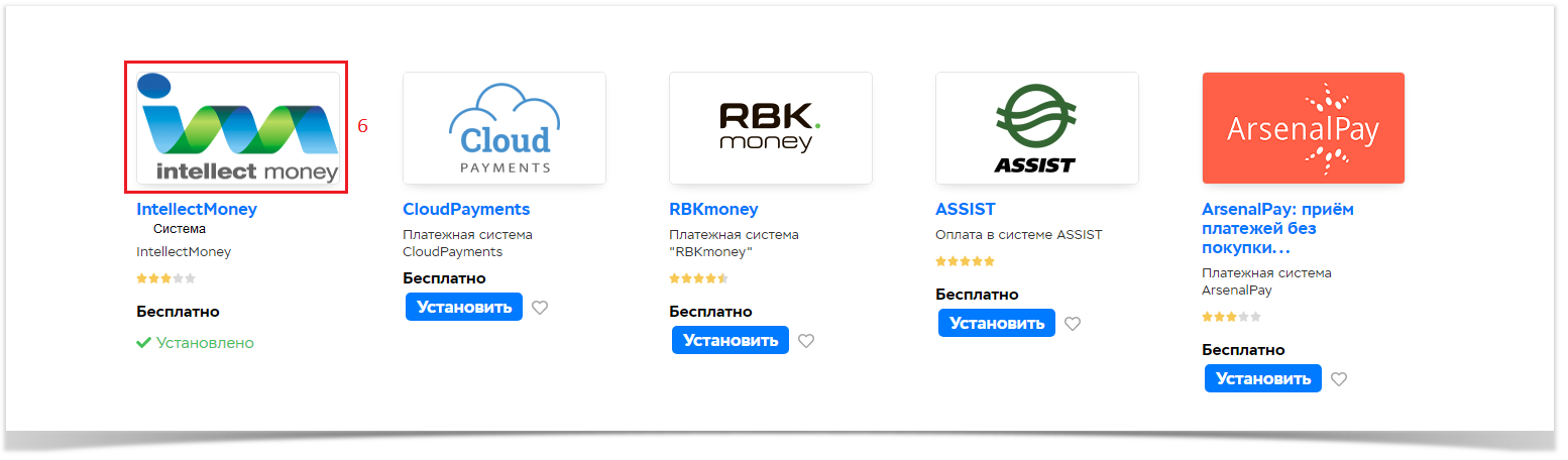 - В списке платежных систем найдите IntellectMoney и нажмите на иконку