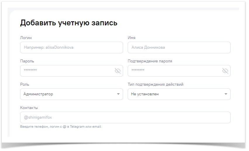 - Выбираем роль: Администратор/ Менеджер /Программист