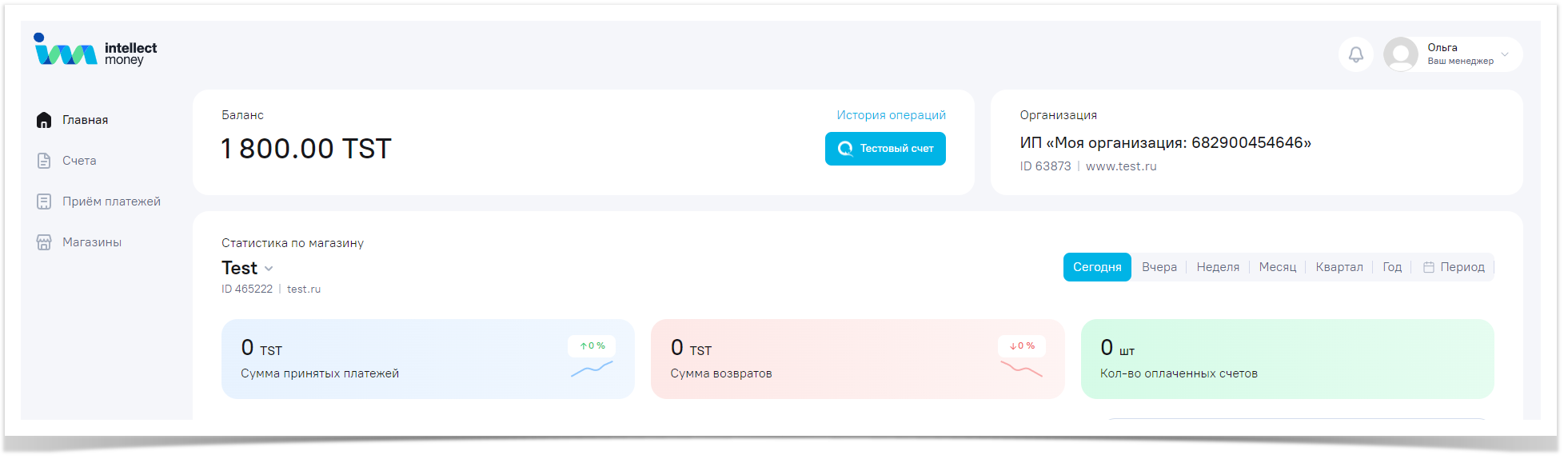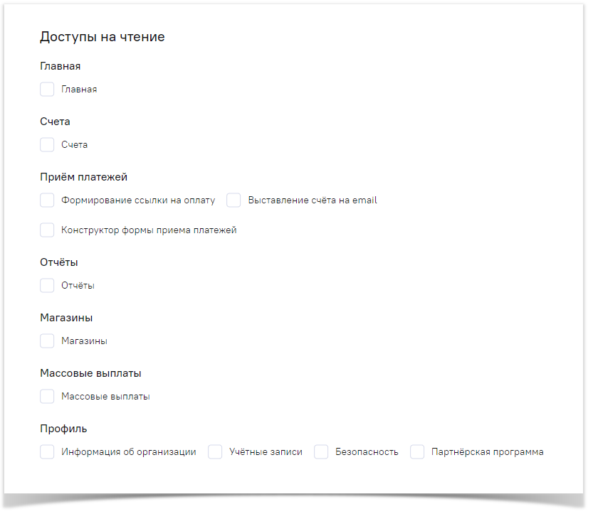 Данный функционал позволяет создавать учетные записи для сотрудников организации с ограничением прав. В зависимости от предоставленных прав сотрудники могут видеть те или иные разделы личного кабинета IntellectMoney.