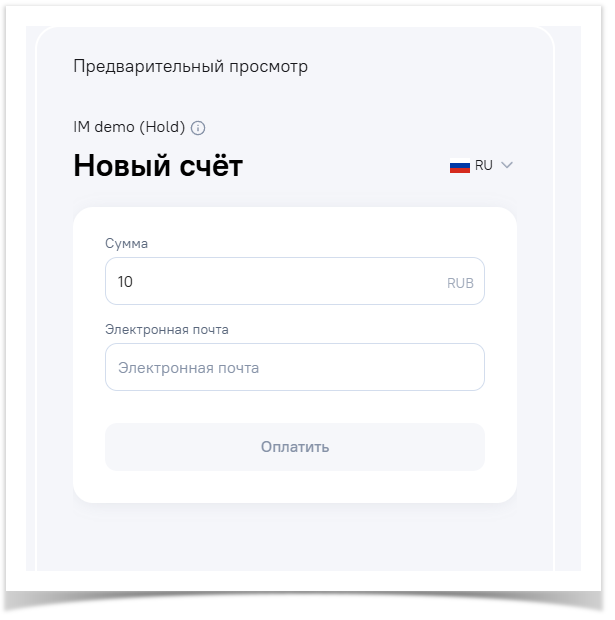 Либо отправить вторую ссылку плательщикам. Там они смогут перейти на нулевой шаг нашего мерчанта, где смогут самостоятельно ввести сумму, электронную почту, а уже после произвести оплату. В данном случае счет создастся только после того, как покупатель нажмет кнопку для оплаты.
